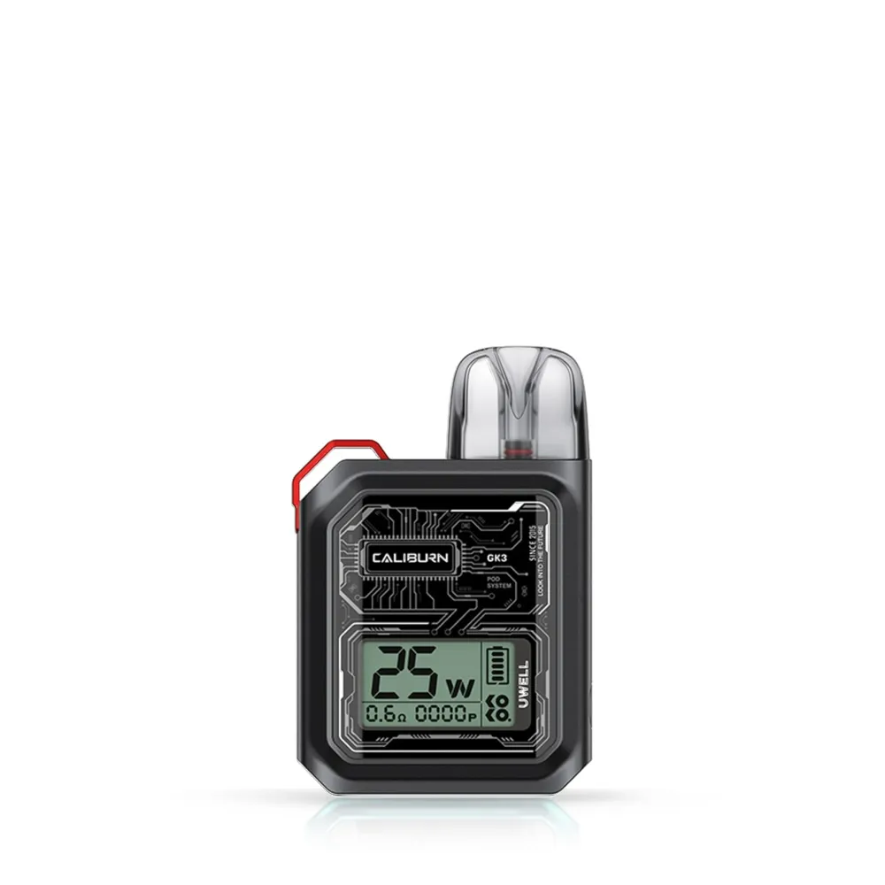 Uwell Caliburn GK3 Pod Kit یکی از جدیدترین مدلهای سری Caliburn است که برای کسانی که به دنبال تجربهای ساده، راحت و کارآمد از ویپینگ هستند طراحی شده است. این دستگاه با ظرفیت باتری 900 میلیآمپر ساعت و توان خروجی 25 وات، قدرت کافی برای تولید بخار و طعم عالی فراهم میکند. این دستگاه با پورت USB Type-C به سرعت شارژ میشود، بهطوری که همیشه آماده استفاده است.